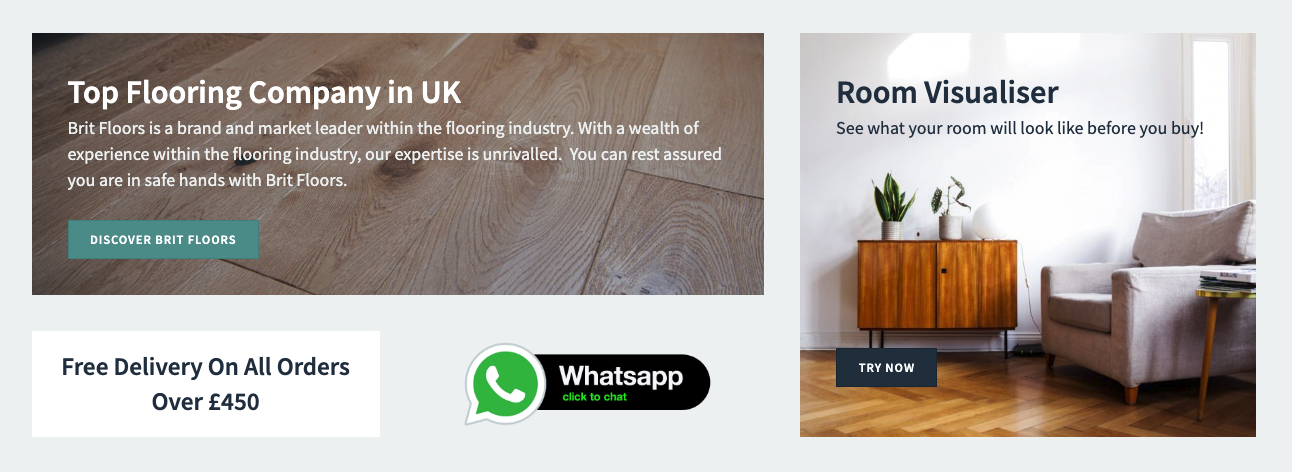 The first thing we needed to do was build an amazing eCommerce website design for Brit Floors to create a trustworthy and easy-to-use experience for new users. We created a new colour scheme to create hierarchy within the various elements, and a simple but effective layout for all of the various links across the site.